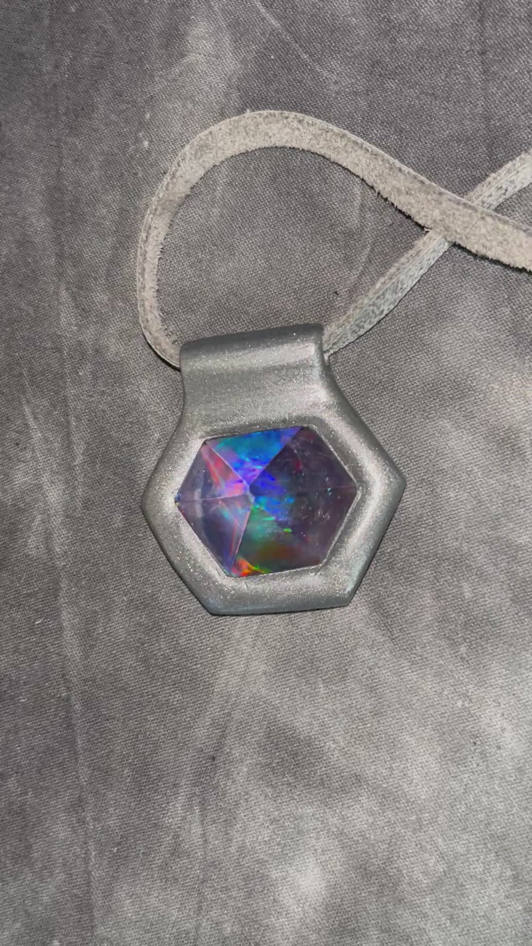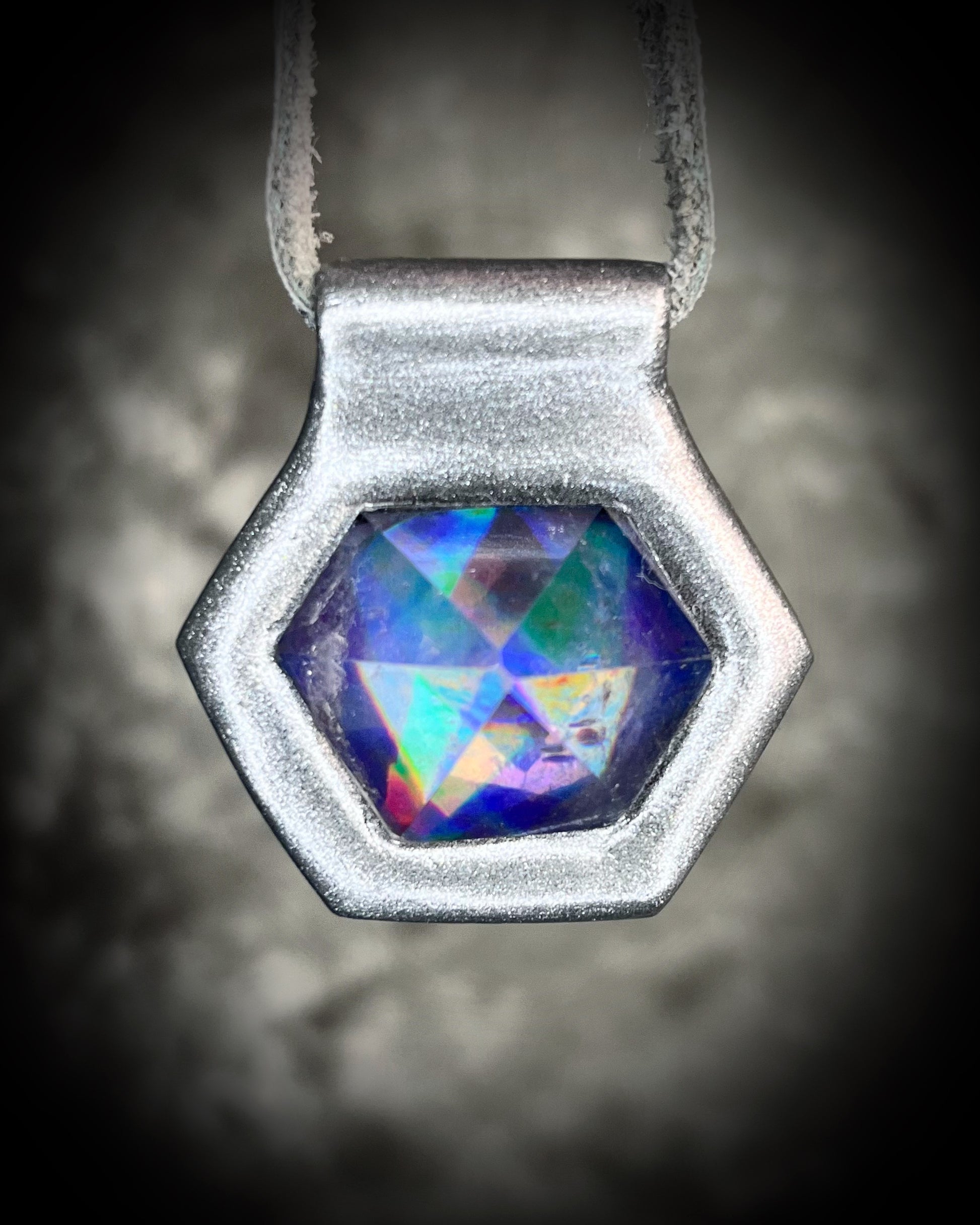 Experience the esoteric magic of our Bowie Black Rainbow Talisman. Inspired by an unending love and belief in transcendence, this piece is our tribute to David Bowie, the legend, the Star Man! These pieces will be strung from black or silver matching leather unless otherwise noted.